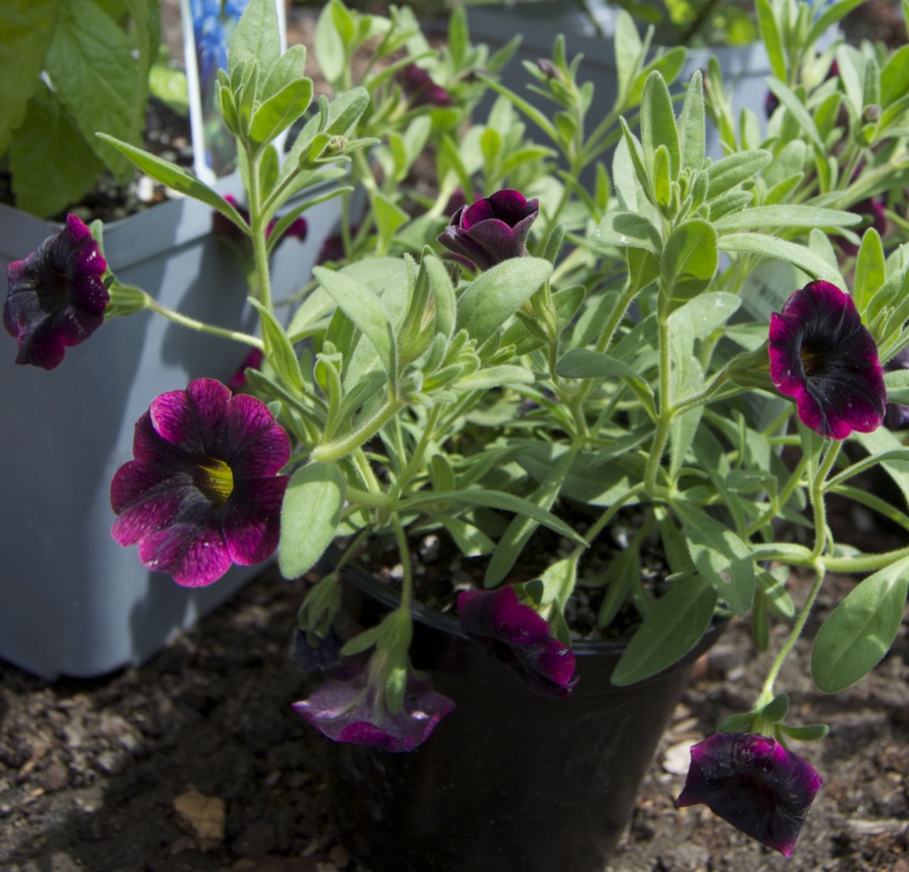 I have purchased  a few annuals (need to get more or be boring) and one is a new selection by Proven Winners called calibrachoa Superbells ‘Blackberry Punch.’  It is a new introduction featured in magazines and on websites this year and has beautiful deep wine to black flowers with a soft fleck of yellow in the center.  Like all calibrachoas they are vigorous, like heat and don’t need to be deadheaded.  They are great for containers as they provide a trailing effect or in flower beds as they wind through the garden but be careful of overwatering.