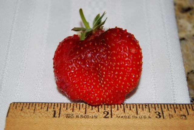 One very surprising highlight were the strawberries. The day-neutrals are still producing and now sometimes I am finding BIG ones hidden amongst the leaves. At the risk of seeming too “engineer-like” I am showing just how big some of them really are. Why is this so significant to me? For the last few years I’ve been of the mindset that all the large-size strawberries you see in grocery stores are either genetically engineered or pumped full of chemical fertilizers and that strawberries don’t naturally get that big. But now, I realize strawberries really can get BIG…just look at this sweety!