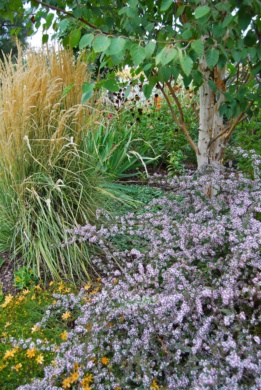 The fall garden is sumptuous with all plant life showing off its final size and hues of the year.