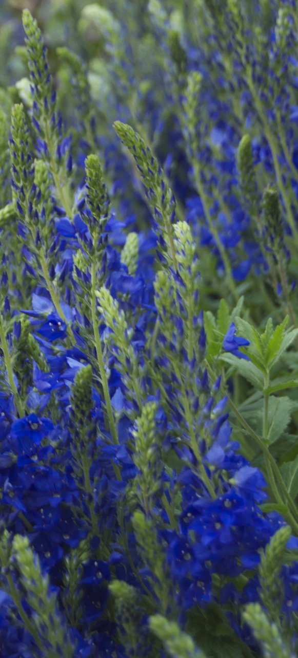 Much is happening very quickly in the garden this time of year.   Some of my favorite true blue flowers are in bloom.  This is Veronica austriaca teucrium ‘Crater Lake Blue’ and it is a real peach of a plant if you like perennials that bloom blue, grow at a moderate pace, need moderate water and are a perfect height for the front-mid border reaching about 12-14 inches in height.  The only drawback to this beaut is that it only blooms for a little more than two weeks and is then finished (meaning a nice mound of green) for the season.  Try as I might to get it to rebloom in the Fall by sheering it back right after bloom, I’ve never been successful. I have V. ‘Crater Lake Blue ‘ combined with some black foliage Antirrhinum (snapdragons) that bloom a deep wine color.  I am a little crazy for the combination of black foliage and blue flowering plants in the garden.  The flowers of the snapdragon are just a decadent topping (like vanilla-basil ice cream on a strawberry cobbler) when they arrive. Here is another shot of ‘black and blue’ in my June garden.  This is a Pacific Giant Delphinium and Ninebark Physocarpus opulifolious ‘Summer Wine’.   The foliage of this shrub can look black, brown and even a coppery deep wine color depending on the light of the day.