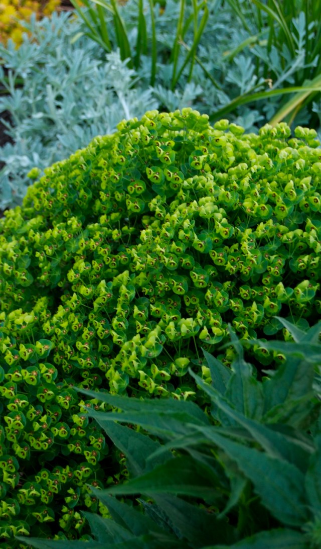 But I like it today combined with perennial Euphorbia ‘Tiny Tim’ and the foliage of echinacea ‘White Swan’ that will show large white blooms with yellow/orange centers in a few weeks. What’s funny is that I didn’t plan this combination, I just needed a place to put the euphorbia and decided to stick it here.  It’s very happy  and I like it with these companions.