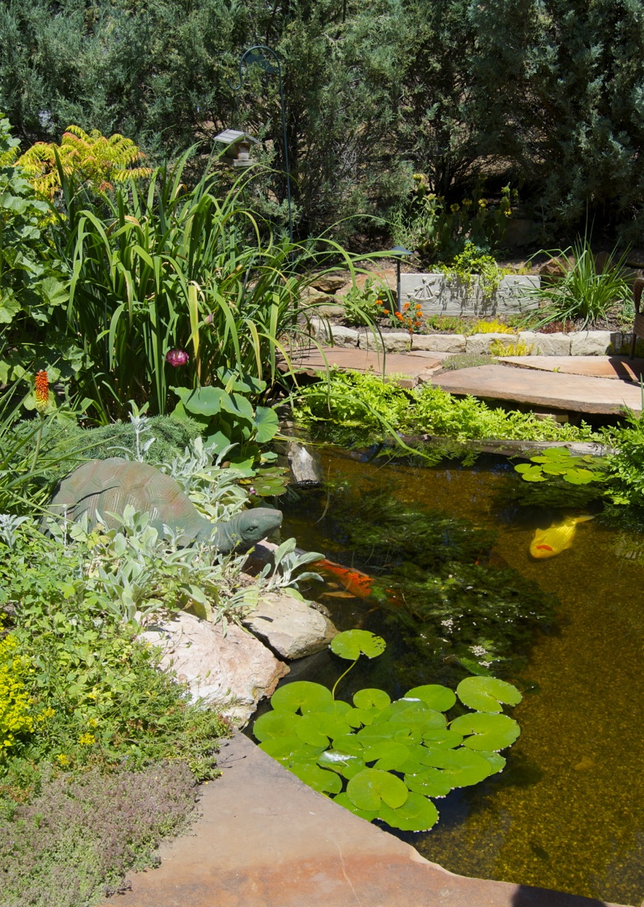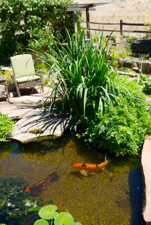 Garden 5 – Delicious Design.  This garden was sort of nestled into a hillside and made use of every bit of space.  It packed a punch as far as design goes (come to find out the gardenkeeper is also the owner of Madeline George Garden Design Nursery) and the central water feature was an immediate attraction.  Beautiful Koi and water plants in a lovely pond just naturally garner your attention!  There is a nice sitting area to enjoy the pond and beyond that an outdoor kitchen and kitchen garden.  Just a hop-skip to get fresh herbs and veggies for dinner!