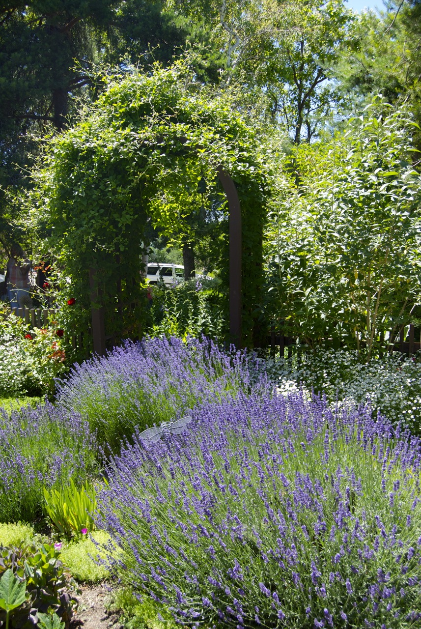 Once you walk through the arbor it’s as if you’ve entered a tiny lavender farm and edible plaza. In full bloom the lavender was beautiful and quite a source to attract pollinators to the nearby edible area that contained the cutest little corn patch I have ever seen.