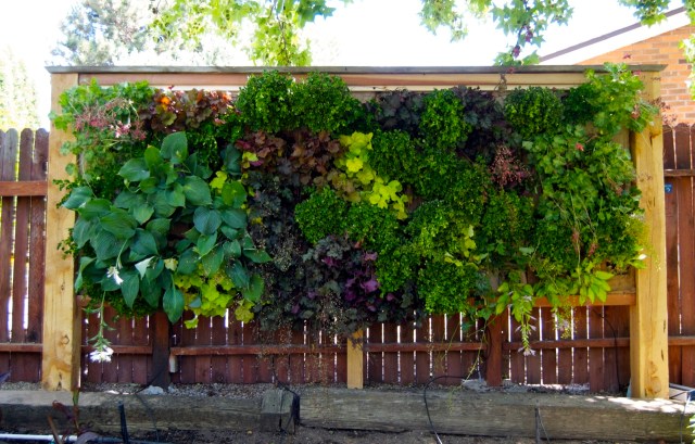 Reluctantly moving beyond the patio area I found a most unique vertical garden! This vertical garden was quite interesting because it was composed of shade plants.  Most vertical gardens or living walls I’ve encountered the last couple of years have been composed of sedums with small root systems.  This system offered a variety of perennials with larger size for larger impact.  I met the designer Jason Doran of Willowglenn Landscape as he was on-site visiting with folks interested in learning more about vertical gardens.  He also has a display at Edwards Nursery in case you would like to see one of his vertical gardens first-hand.