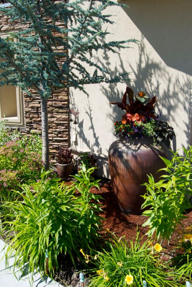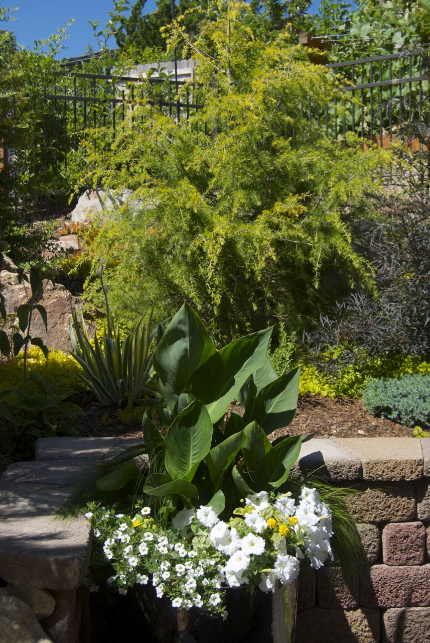 After checking out the edibles I start to notice the artistic planting and the amazing color that stands out so nicely in the bright wide open skies of Idaho.  This is the kind of color needed to be noticeable in a sun-soaked garden in big sky country.  The bright light here can wash-out soft colors.  Gorgeous and most are low water.
