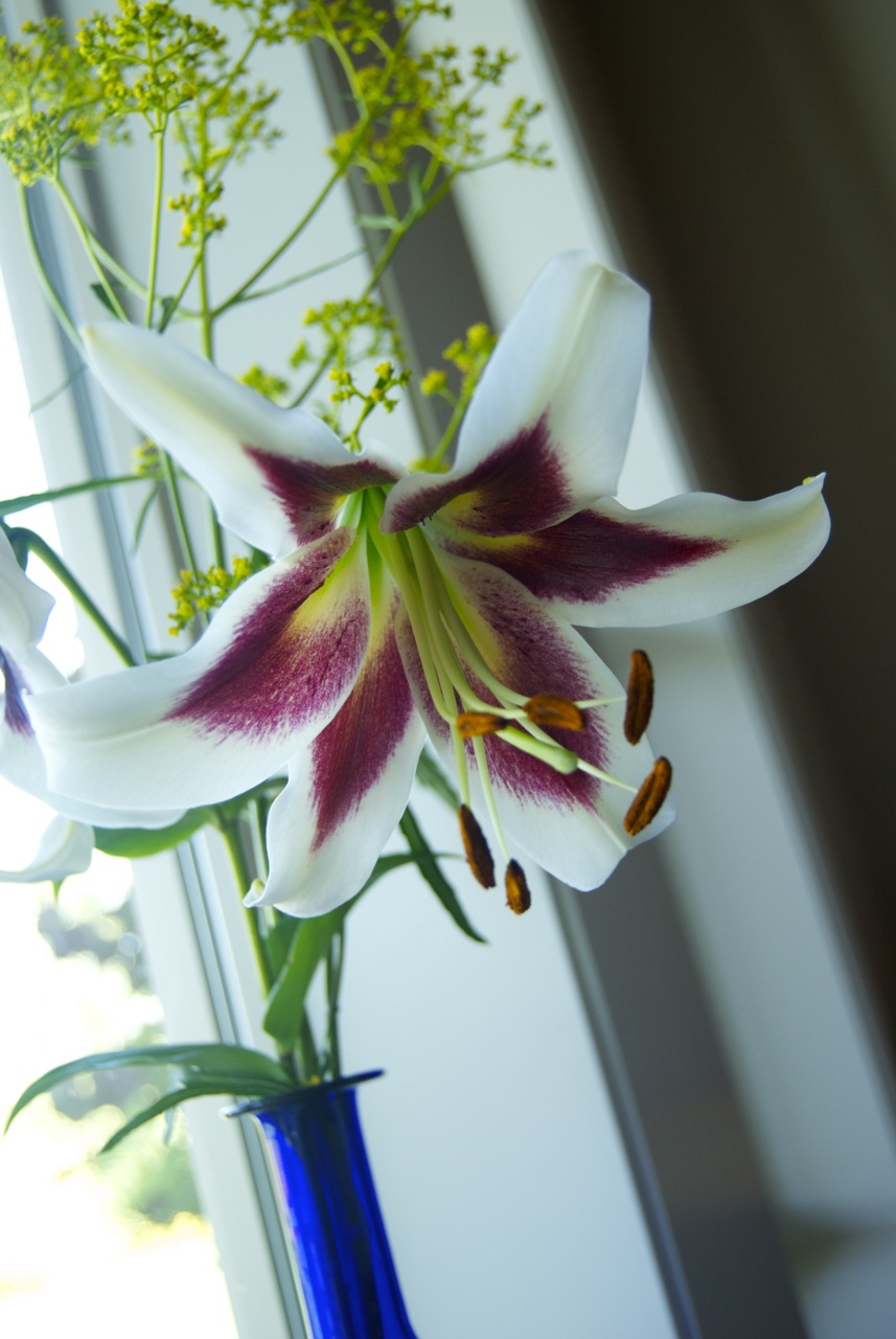 I can’t stand to keep lilies outside-only because they are such a favorite. So I cut a few to enjoy their graceful presence and pleasant perfume inside as well.