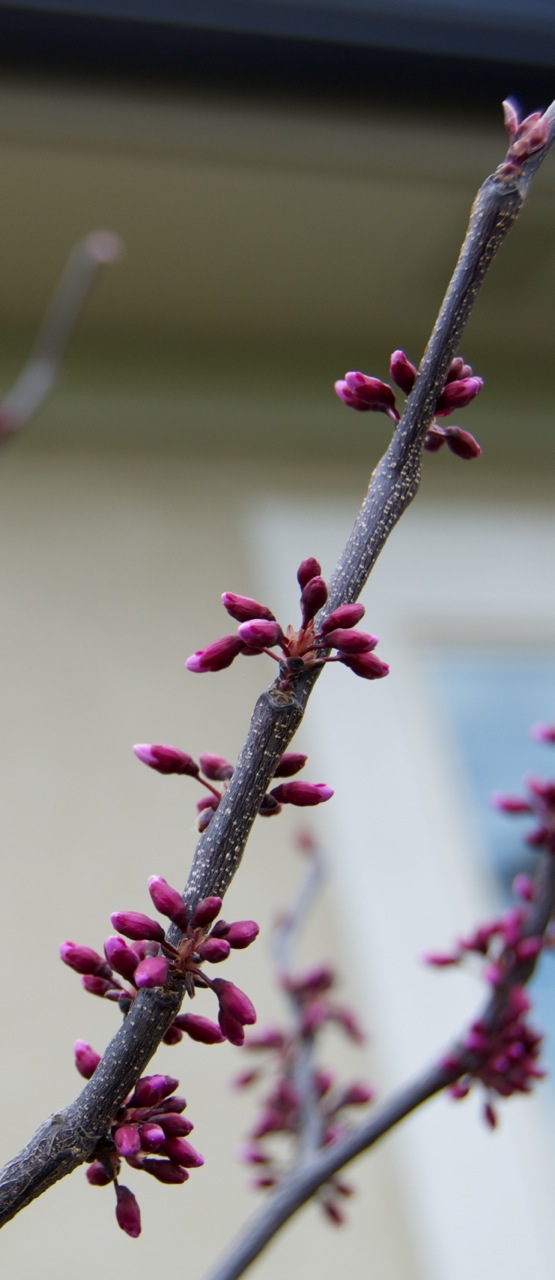 The one and only ‘Forest Pansy’ redbud (cercis canadensis) tree that survived the winter is surviving spring with its beautiful tiny blooms going from this to this.