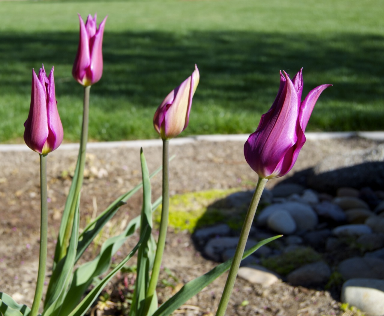 New lily flowering tulips ‘Purple Dream’ in the garden. Too cold for them to fully open but I love their elegant shape.
