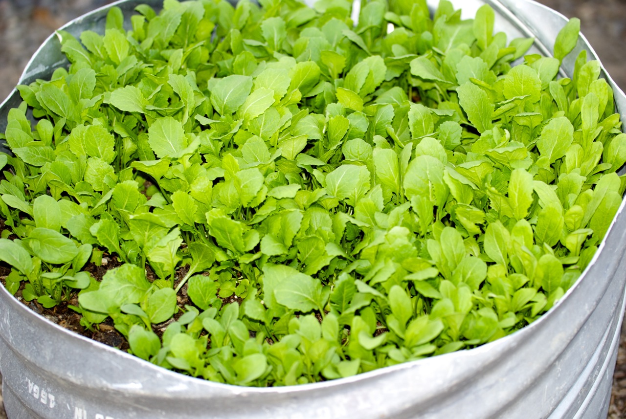 Arrugula and brocolli rabe went crazy in my steel planter while being protected by floating row cover. Mark one up for the gardenkeeper for not giving in to the difficult early Spring!