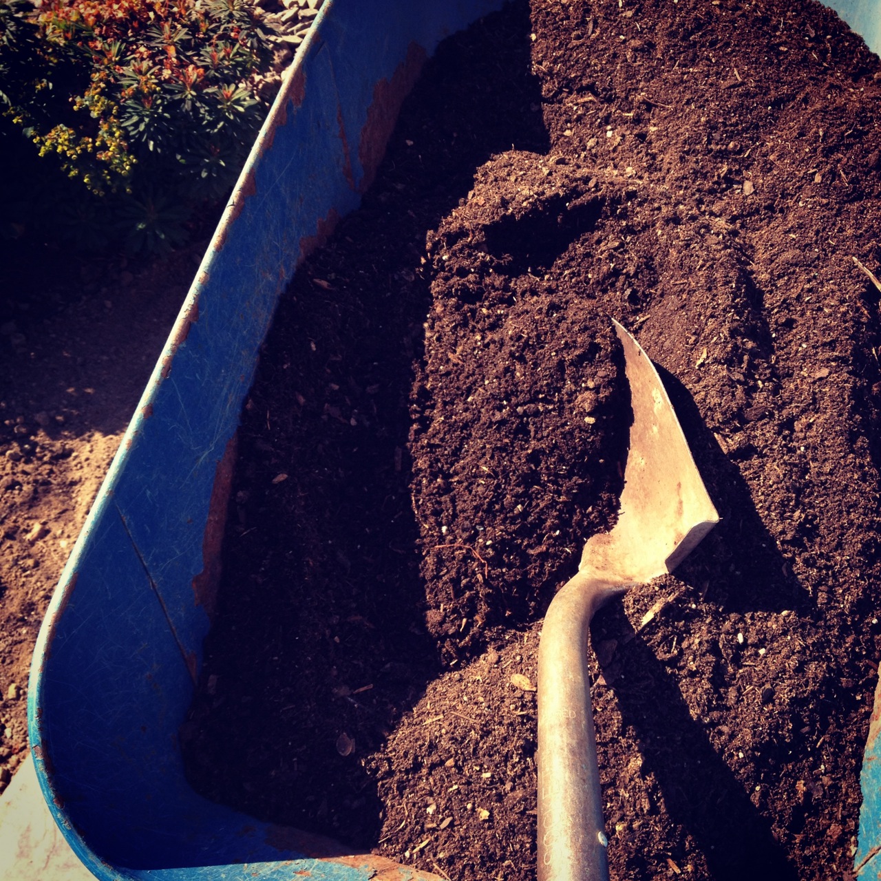 Generally speaking, the heavy clay soil in the Boise area is at the higher end of the pH scale making for soil conditions that tend towards alkalinity. If the pH gets too high many plants cannot access various micronutrients of the soil, especially iron, which leads to a decline in health and possibly chlorosis. Adding sulphur and peat moss adds organic matter to the soil and breaks up the heavy clay particles while helping to maintain or lower pH levels.  I’m careful not to go overboard with the sulphur but mix in 2-3 8 oz cups into to each wheelbarrow as an additional amendment.