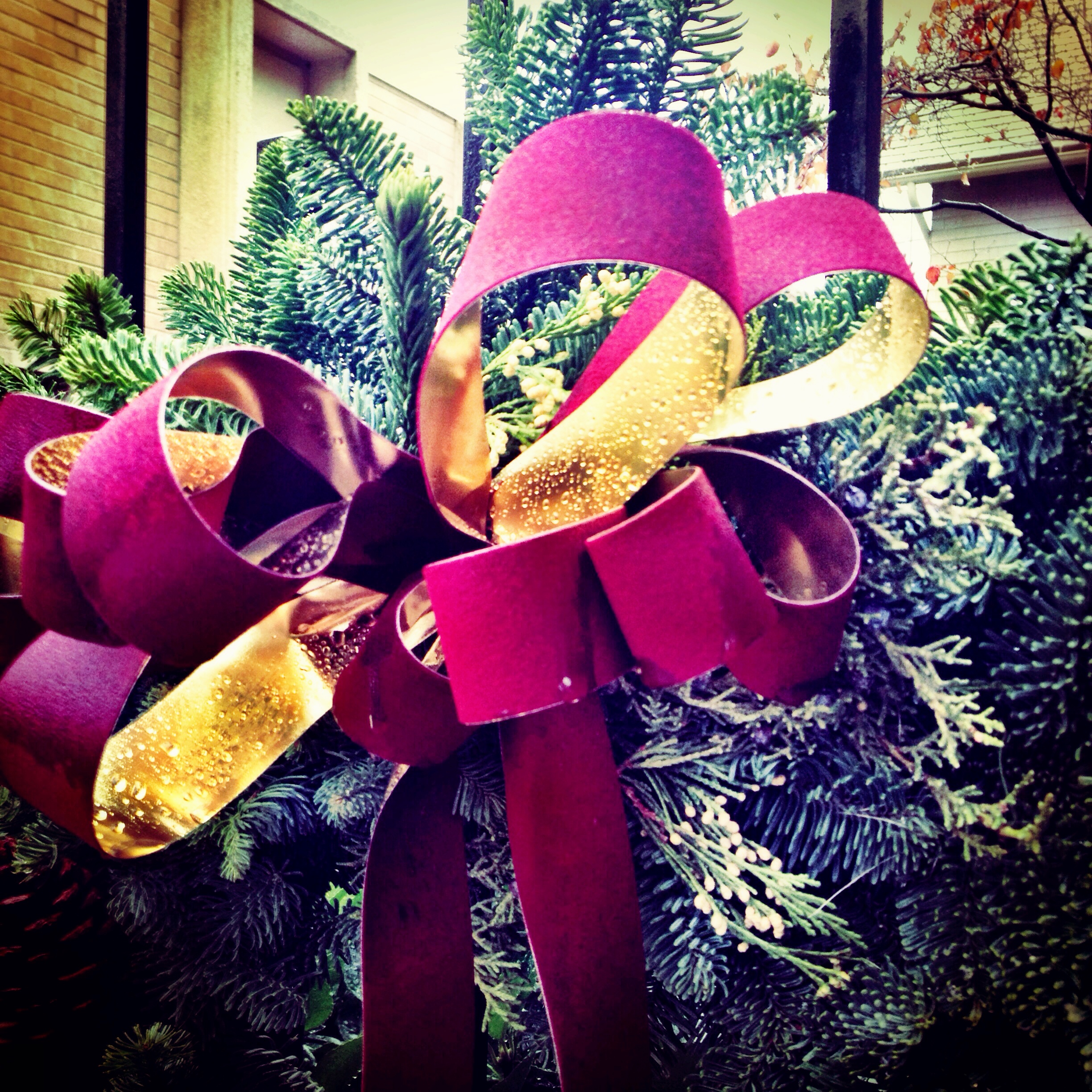 There is so much history and symbolism to the immensely popular winter holiday/Christmas wreath I’ve decided to do a tribute to it.  For the next 28 days, I will post a photo of a holiday wreath I’ve spotted and found particularly inspiring.  Maybe from a symbolic, creative, classic or simply pretty, point of view.