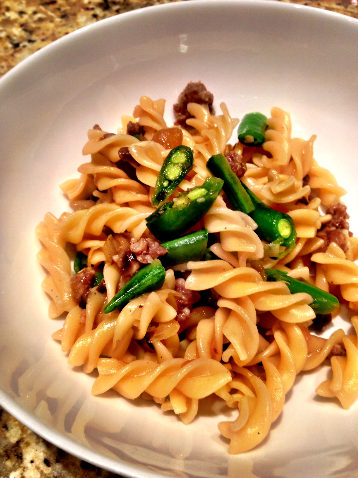 1. Cook 1 box of penne or fusili pasta al dente, according to package instructions, set aside with a little olive oil drizzled on it to prevent sticking.
